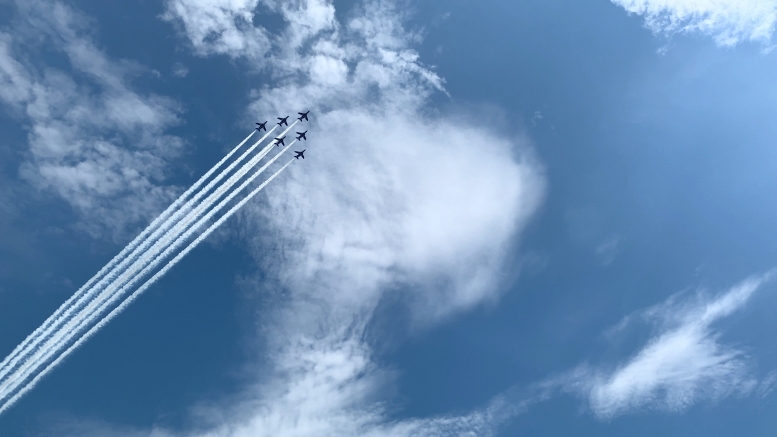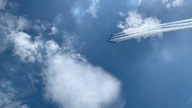そこで、実際に真上をブルーインパルスが飛行するということで、間近で飛んでいる様子を見たいと思い、早く現地に向かって行きましたね。