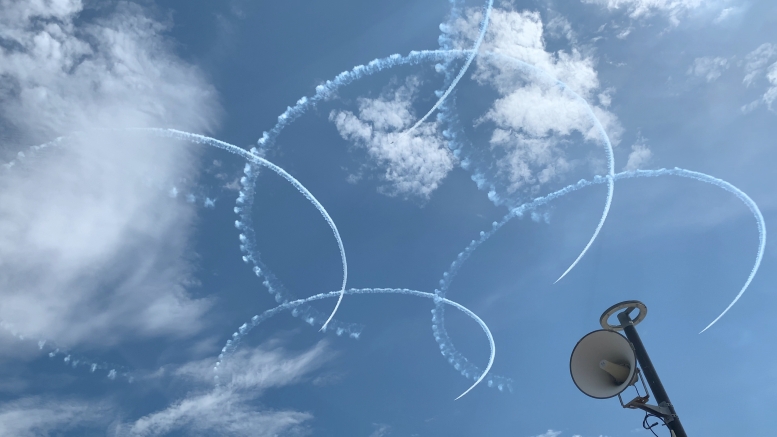 これは、リアルに五輪を描くのは操縦する腕が良かったから出来たことで、パイロットさんに大きな拍手を送りました。