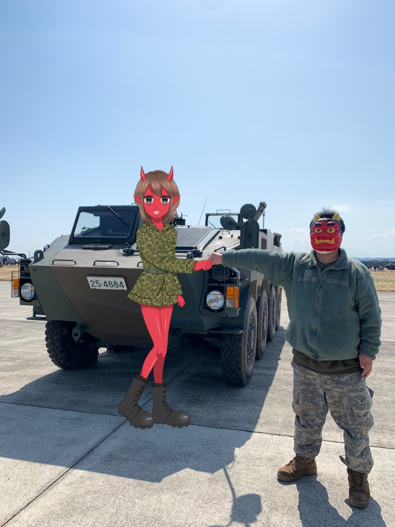 ご希望があれば、グングン鬼軍が自衛隊、ミリタリーのイベントに参加中にお声をかけて頂けると大鬼王国の可愛い軍人さんと記念撮影が出来ますよ♪