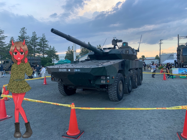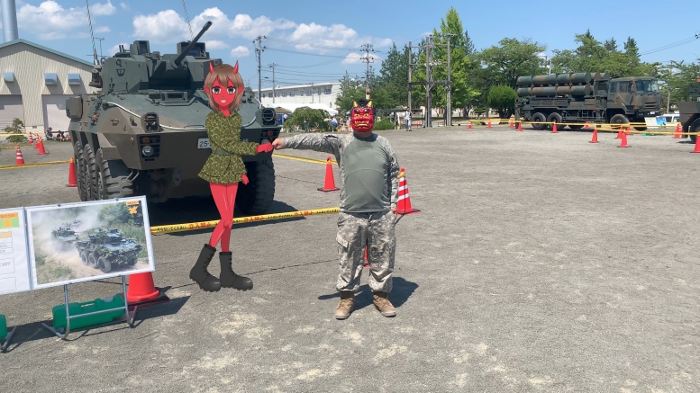 広報官である紗奈丸氏は、陸上自衛隊の16式機動戦闘車に大変、ご興味を持っており車両の前に立って記念撮影を行いました。